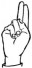На ћирилици написано МИНА ТОДОВИЋ састоји се из 11 слова [?]. Исписано ћириличном једноручном азбуком за глувонеме: